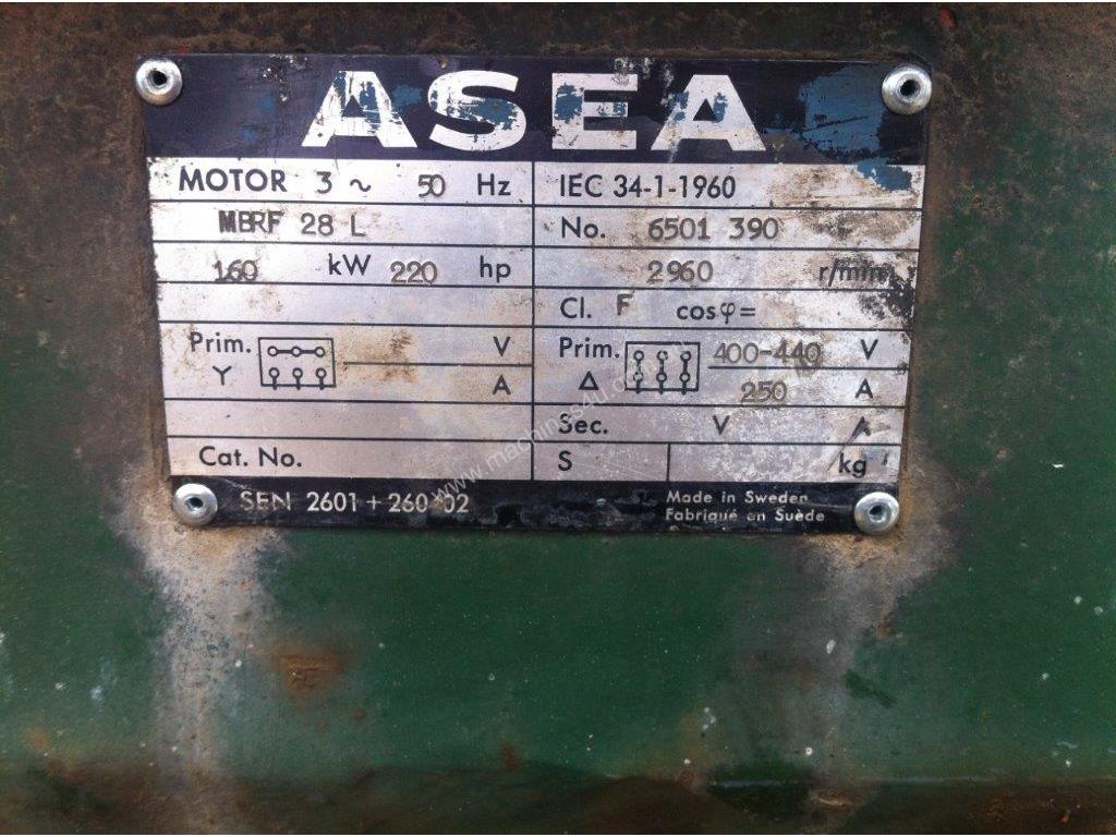 Used ASEA three phase motor, 415 volt,2,960 RPM., removed from Atlas Copco compressor. Insulation tests ok, bearings sound good.